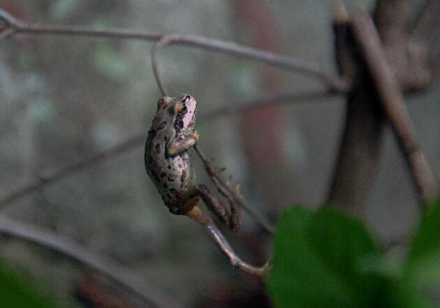 004 やせ蛙 冬眠明けか 滑り落つ