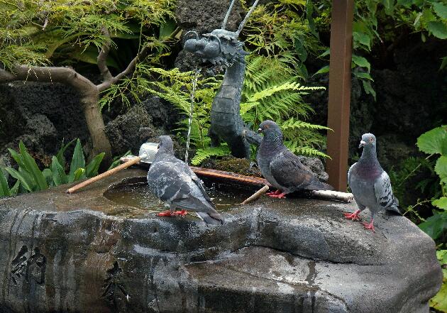 007 鳩の恋 手水鉢や 心揺れ