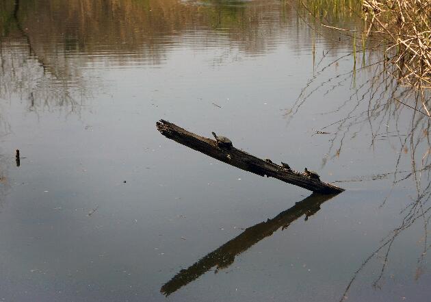 011 飛び込んだ 冬眠明けか 亀一家