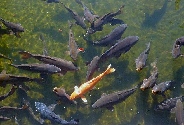 014 鯉の群れ 中に一匹 錦鯉