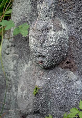 009 おんぶして 野辺の恋かな イナゴ跳ぶ
