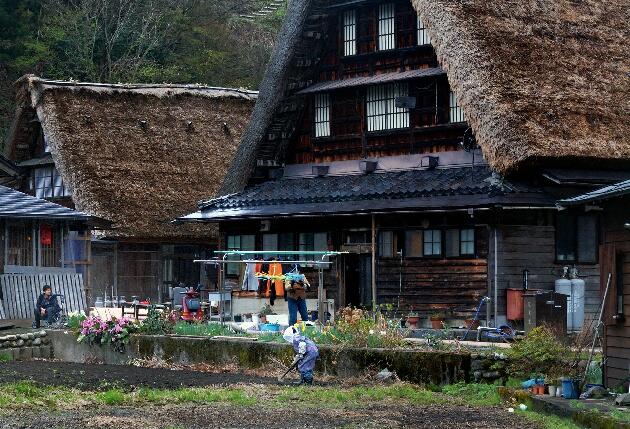013 寄り沿って 茅葺き屋根と 咲く桜